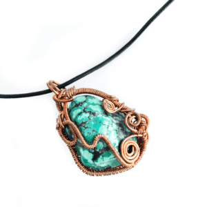 Copper Wire Wrapped Turquoise Stone Pendant Necklace
